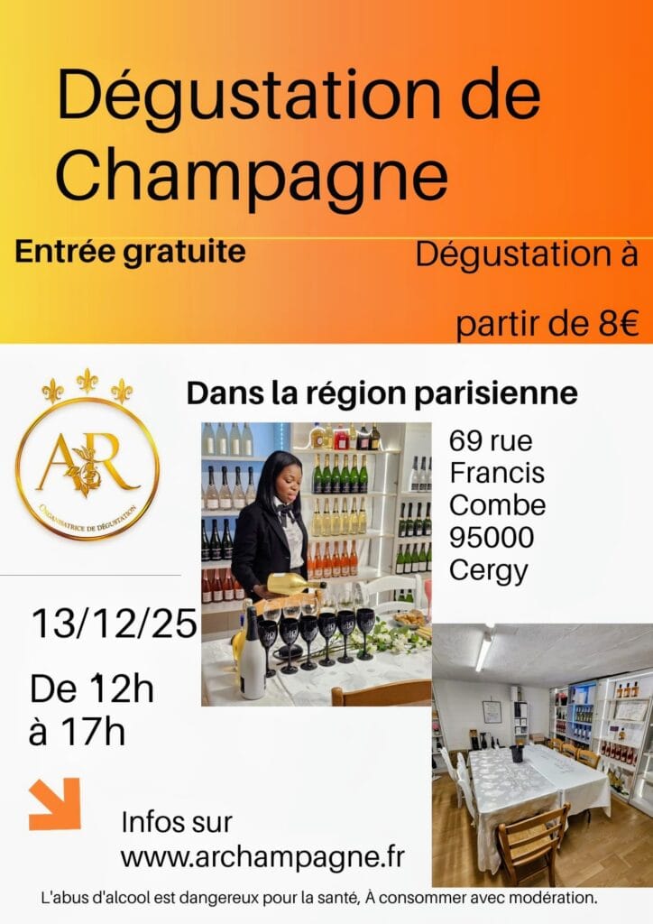 AR Champagne vous donne rendez-vous pour une dégustation festive en région parisienne, à Cergy (95).